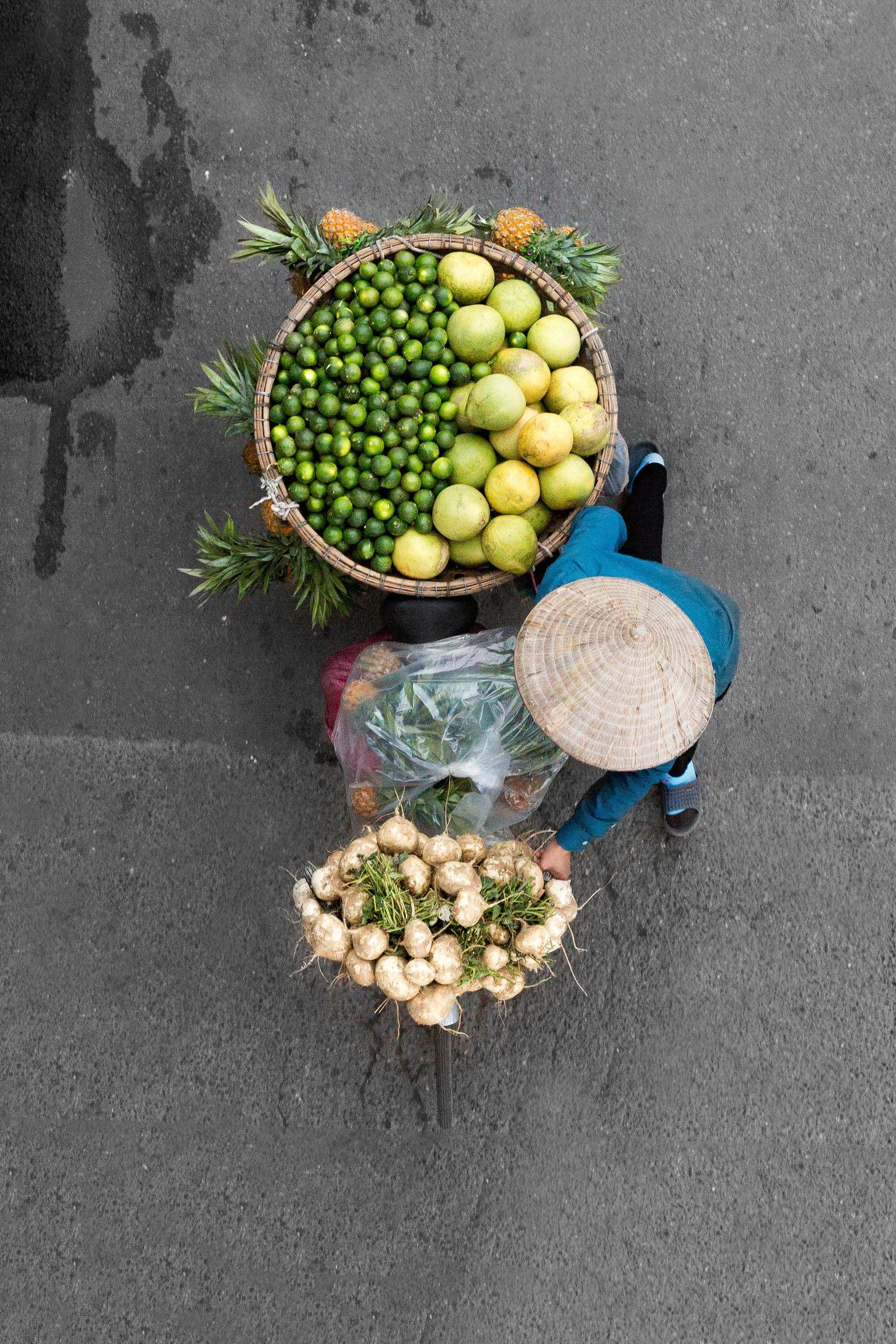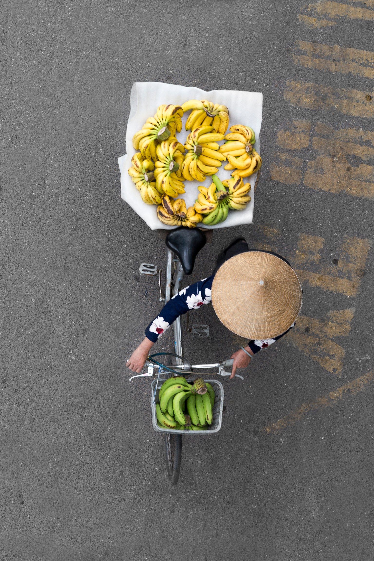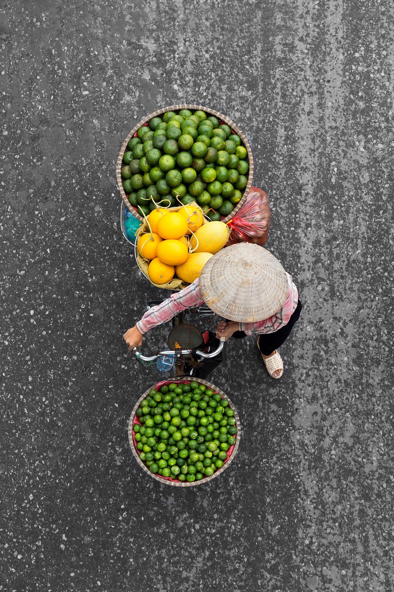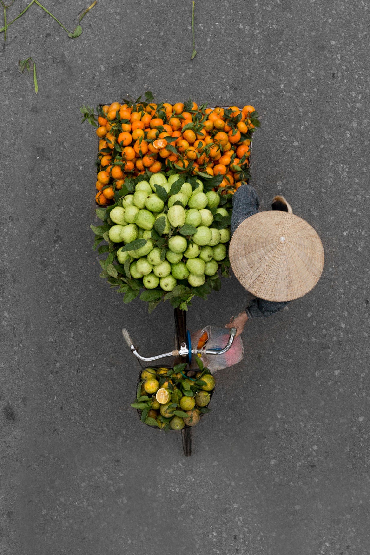 荷蘭攝影師希琳克決定站在陽台和大橋上,用向下俯瞰的視角記錄下河內單車小販的日常。