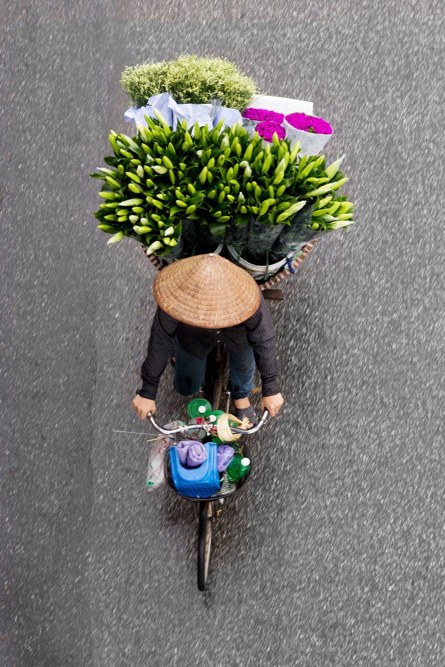 網友Loes Heerink每天清晨 4點,河內的蔬菜和鮮花批發市場不乏單車小販的身影,他們會決定今天要載什麼到大街上叫賣。