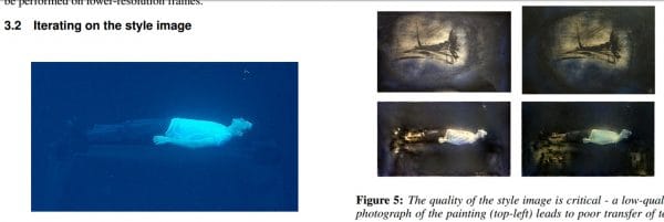 這篇論文的題目是《以類神經風格轉移技術將印象主義帶入 Come Swim》( Bringing Impressionism to Life with Neural Style Transfer in Come Swim), 裡面提供了關於如何在電影中運用這種機器學習的詳細案例研究。這篇文章將《Come Swim》描述為「水下一個傷心人詩意、印象派的肖像」,電影的美學風格基於一幅史都華的畫作,該作品描繪「從睡夢中醒來的人」。
