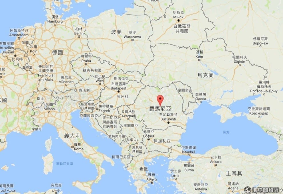 圖中紅色地標處即羅馬尼亞。羅馬尼亞位於東歐,1989年人民發動革命推翻共產黨獨裁者,隨後成為社會民主主義國家,於 2007年加入歐盟。羅馬尼亞被稱為是吸血鬼的故鄉,小說家斯托克(Bram Stoker)筆下文質彬彬的吸血鬼德古拉(Dracula)男爵就住在羅馬尼亞。
