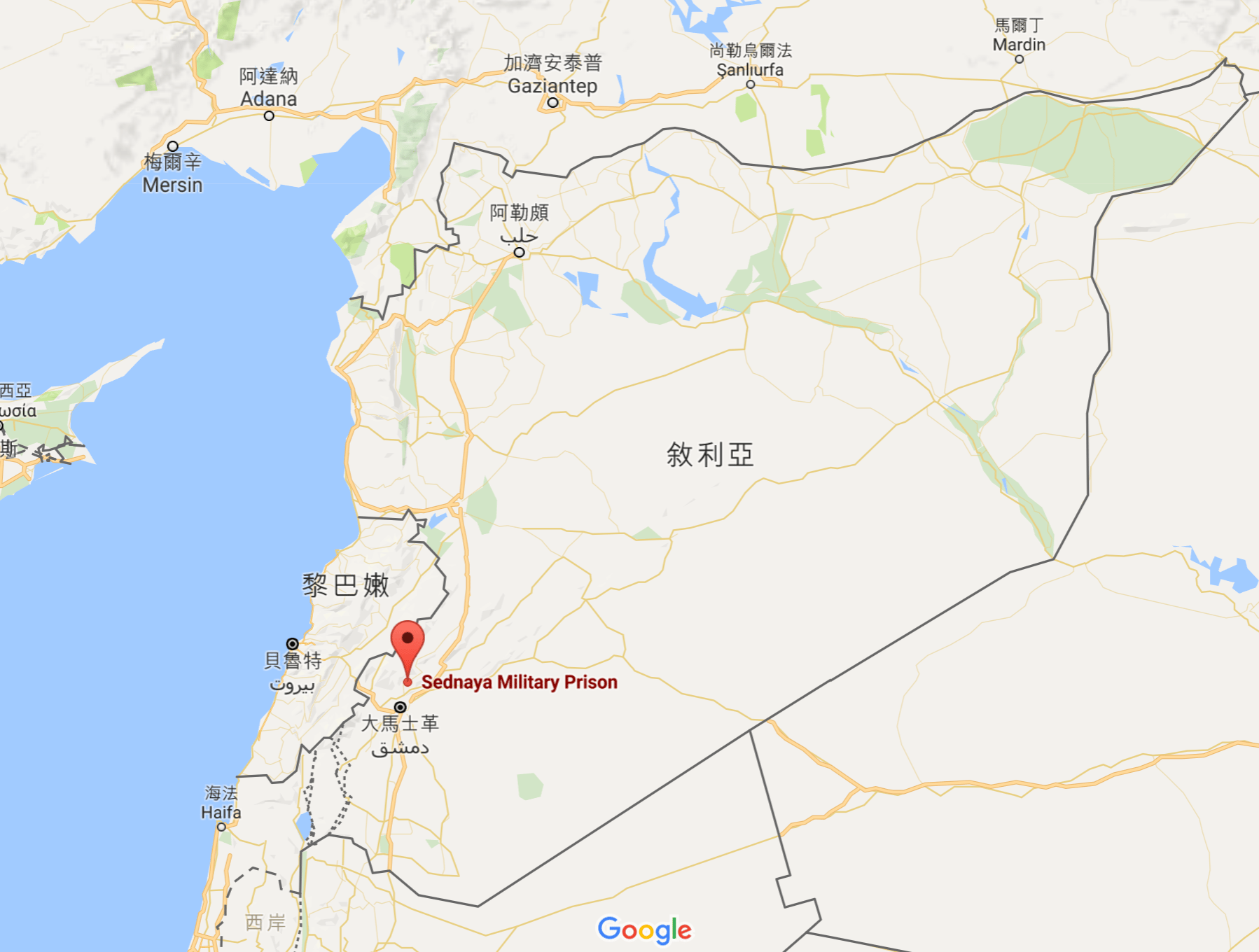 圖片紅標處即為塞德納亞軍事監獄的所在地。去年 8月,國際特赦組織已經針對這裡發表過虐囚的調查報告。