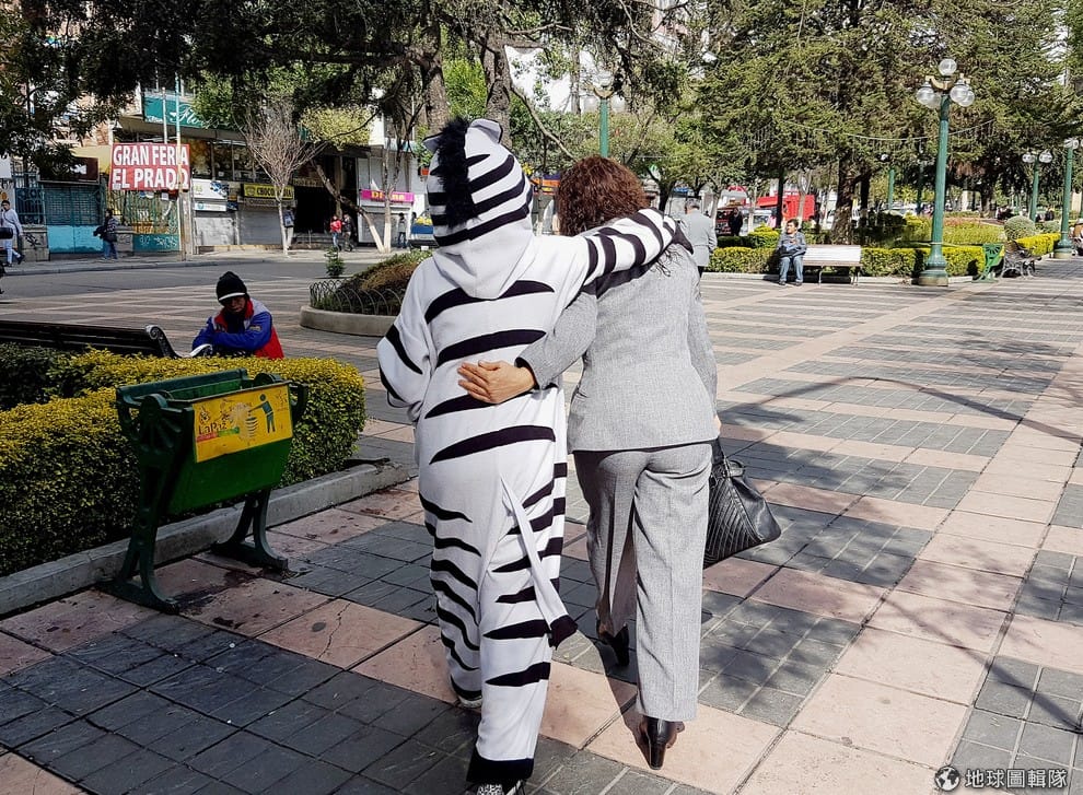 這一隻隻斑馬全由「斑馬人」計畫的志工扮演,他們是拉巴斯城最美的一道風景,多年來守護著這座海拔 3,829公尺高的城市。