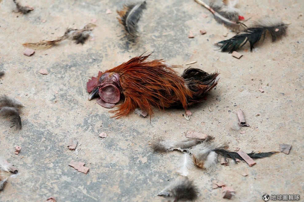 繼續閱讀一隻雞頭在活動結束後被丟到地上。
