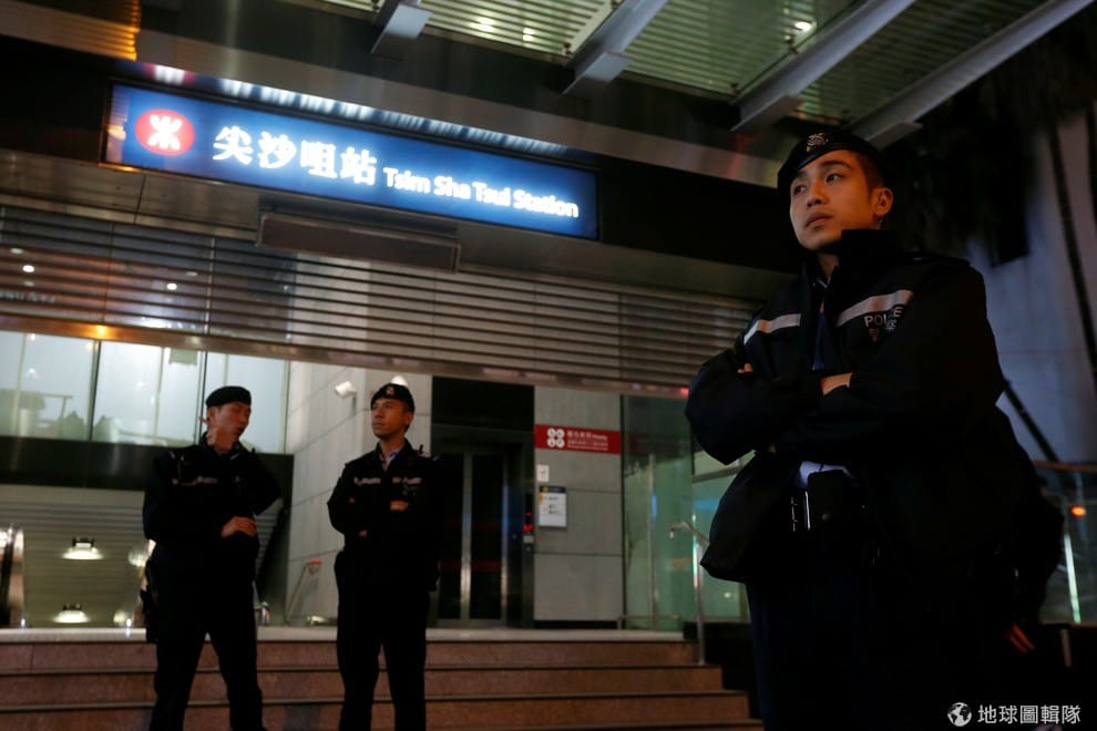 縱火案發生後,港鐵尖沙咀站外部署了大批警察,確保現場狀況在控制中。