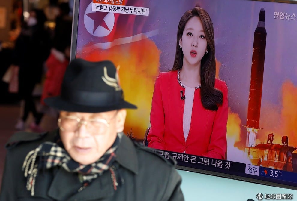 南韓一名主播正在播報北韓彈道飛彈試射的新聞,這是自去年 10月以來,再次有北韓試射飛彈的消息。