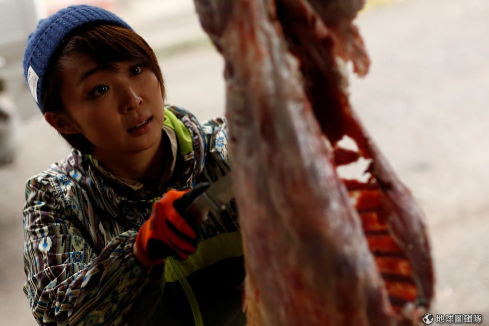女獵人兒玉千明正在解剖剛剛在樹林中捕到的野鹿。隨著獵人的人數下降,當局也積極招募女性加入獵人的行列。