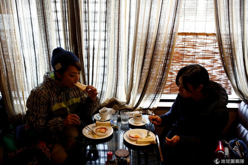 在出發前往打獵之前,兒玉千明(左)和福野葵(右)先用早餐填飽肚子。
