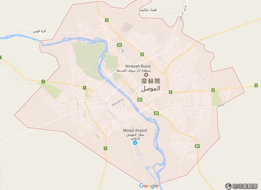 圖為摩蘇爾城全圖,這個地方被底格里斯河一分為二,接下來伊拉克軍方就是要向底格里斯河以西前進。