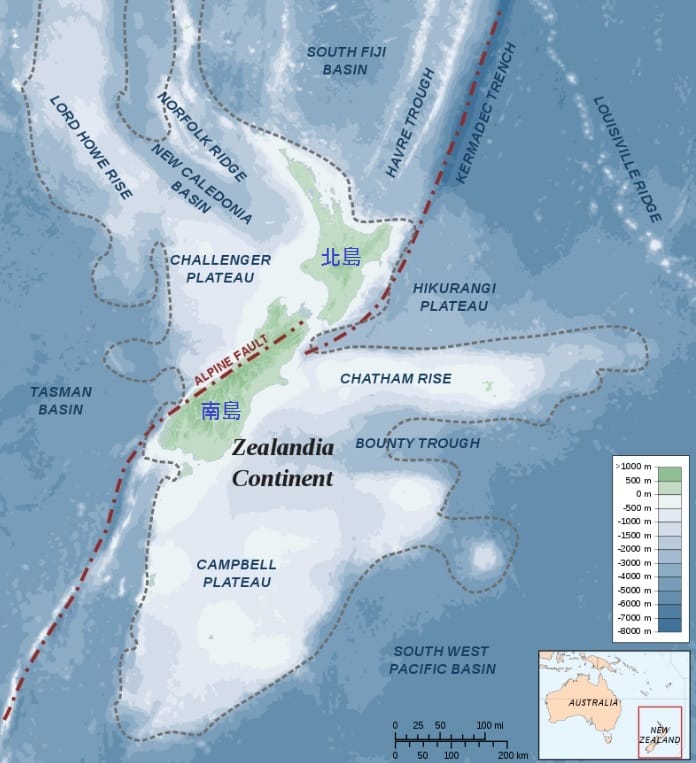 原本,西蘭大陸很容易就可以晉升為大陸,如果地球上的山峰和峽谷「和在火星和金星上被標記的方法一樣」,也就是沒有討人厭的海洋擋住岩石的真相。