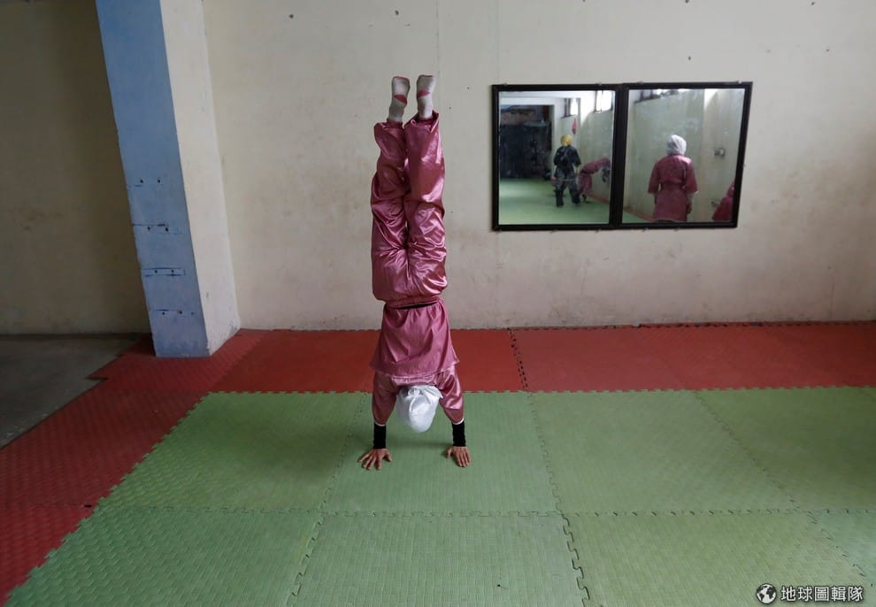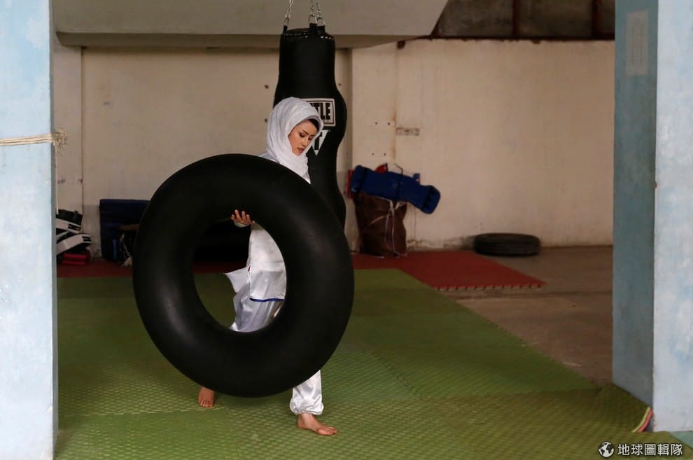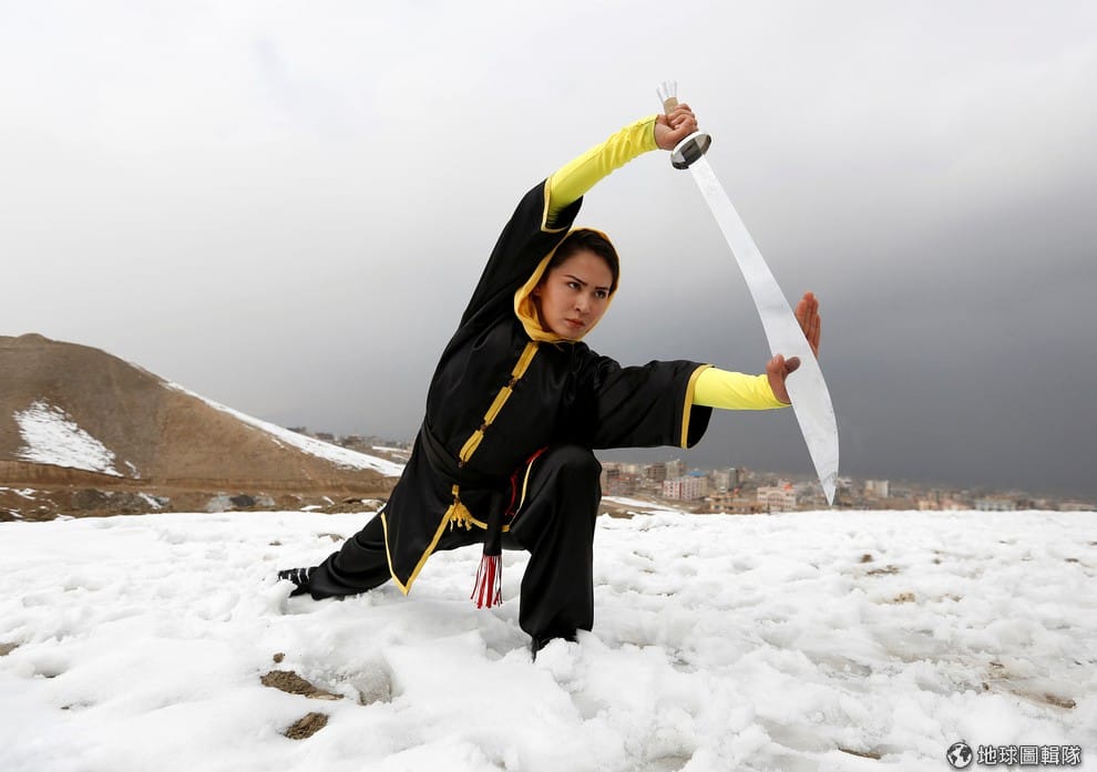 阿茲米正拿刀比畫著。談起自己的女兒,阿茲米的爸爸阿馬度哈(Rahmatullah Azimi)提到他雖然很擔心女兒的安危,但同時也很高興能看到她訓練其他女孩的模樣,也對自己啟迪阿茲米,並支持她所做的一切感到非常開心。