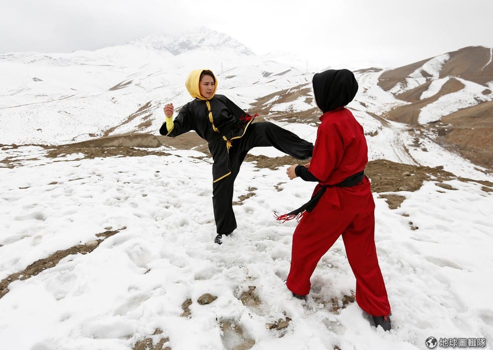 武術老師阿茲米在雪山上進行武術指導,這裡是專收女性的少林武術社團。