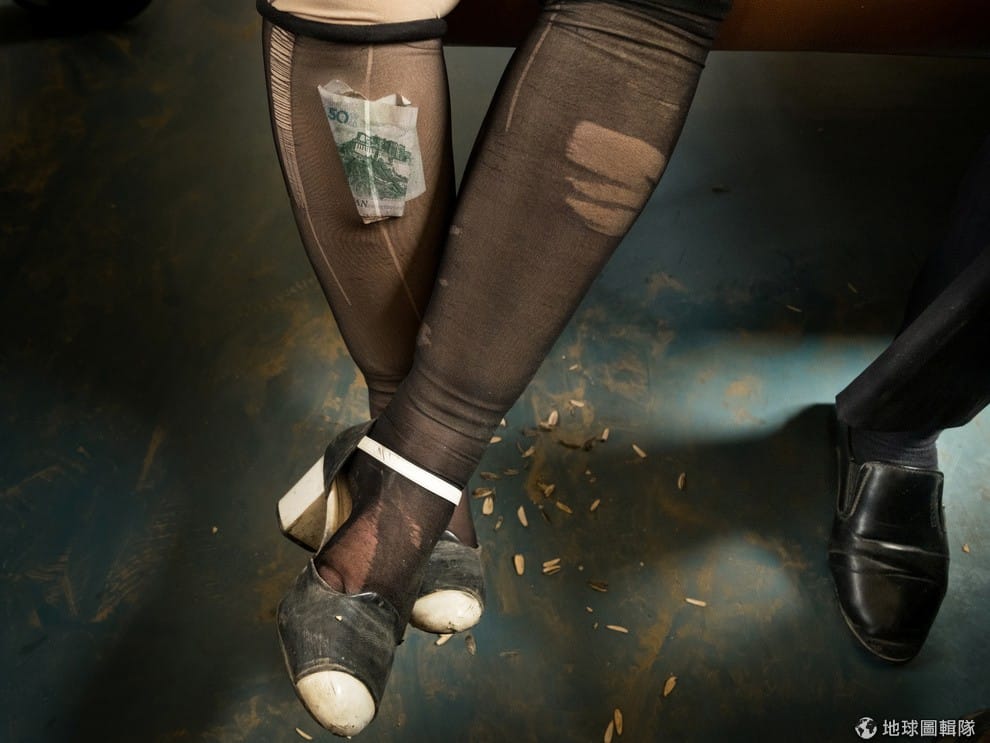 照片拍到一名維吾爾族女孩的襪子裡塞了一張紙幣。她搭乘的是在 2016年5月通車,從深圳直達烏魯木齊的特快車,總長 4,683公里,全程大約 50個小時。
