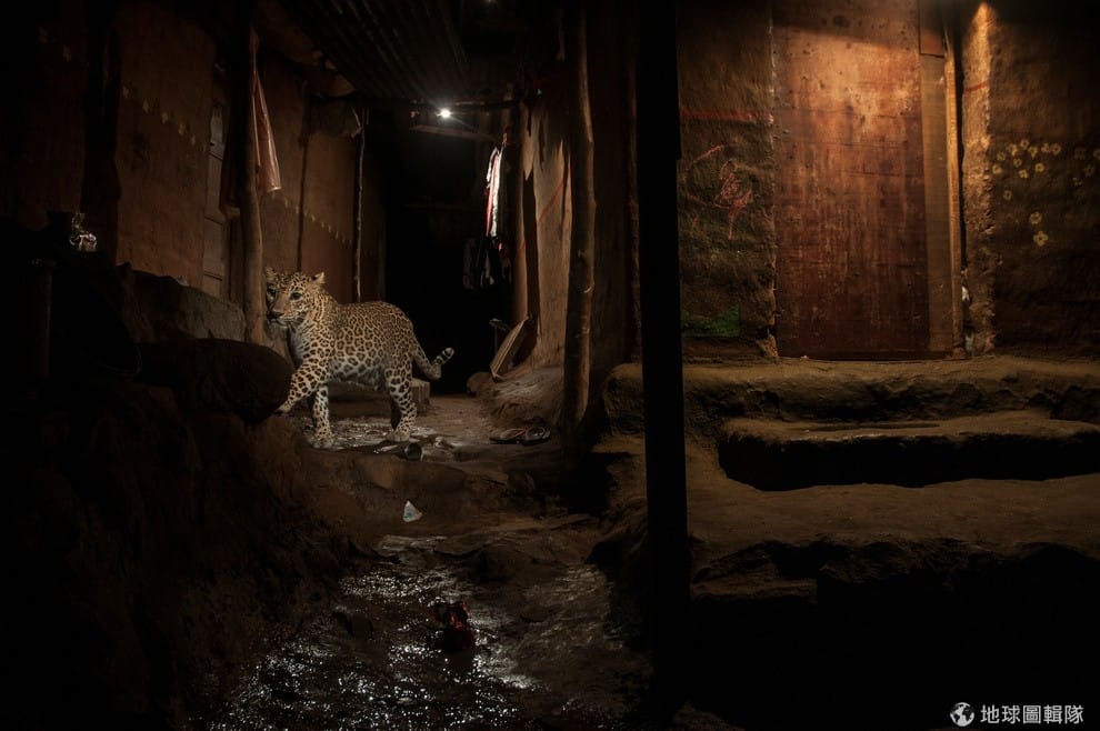 一隻野生豹從孟買(Mumbai)的桑賈伊甘地國家公園跑出來溜達。