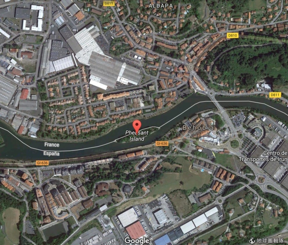 圖為雉島的俯瞰圖,小島上方是法國,下方則是西班牙。