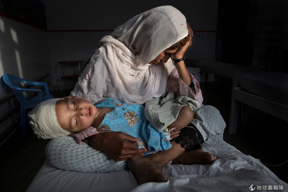 2016年3月,一名女子抱著受傷的 2歲侄兒哭泣,她的侄兒在塔利班恐怖分子的自殺炸彈攻擊中受傷。多年來,阿富汗都是塔利班恐怖分子的攻擊目標,從 2014年開始伊斯蘭國加入攻擊。