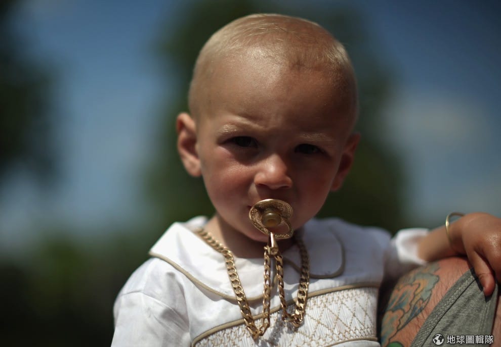 gettyimages1歲半的大衛非常有架式的看著攝影鏡頭,他身上的金鍊子奶嘴相當吸睛