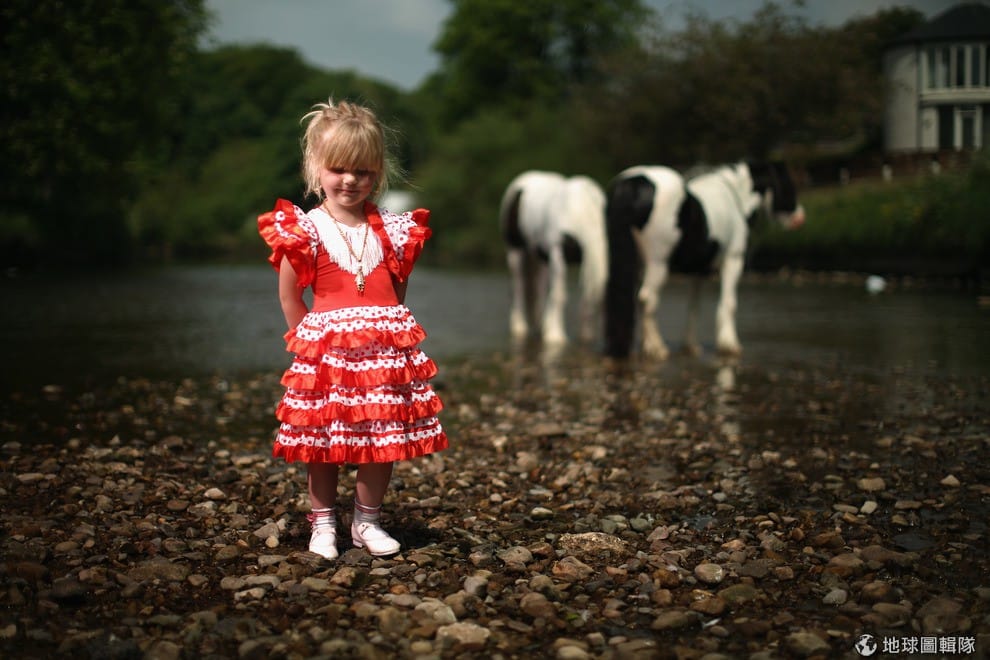 每年6月的第一周,原本只有不到3000人的艾波比(Appleby)小鎮上湧入上萬名的吉普賽人,他們有的坐在河岸旁享受陽光、有的直接駕馬下水要把整身熱氣退散,更多人則是忙著幫剛洗完澡的馬匹們理理毛,等待買家上門賣個好價錢,原本幽靜的小鎮在萬人聚集下變得熱鬧喧嘩,他們全是為了最重要的年度盛事「艾波比馬匹交易會」(Appleby horse fair)而來。