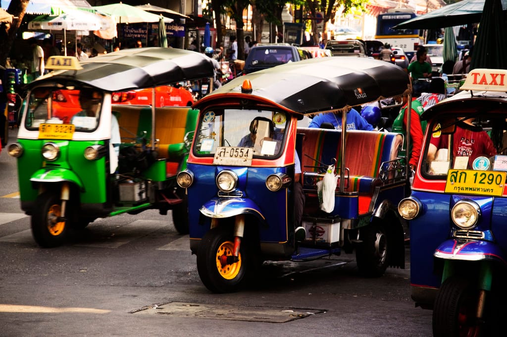 近日,泰國當局開始積極取締Uber等叫車app,他們也打算推出政府版本的叫車app。圖為泰國街頭的嘟嘟車。