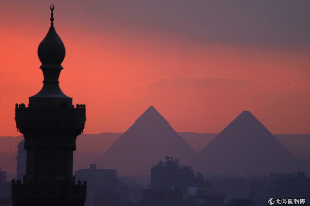 晚霞與古夫金字塔相照映著。由於政治動盪與恐怖攻擊,使得過去仰賴觀光業的埃及面臨極大困境。