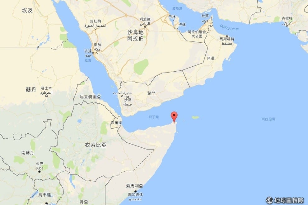圖中紅色地標處為索馬利亞東北部邦特蘭半自治區阿魯拉鎮,根據報導被索馬利亞海盜劫持的油輪停靠在這附近。
