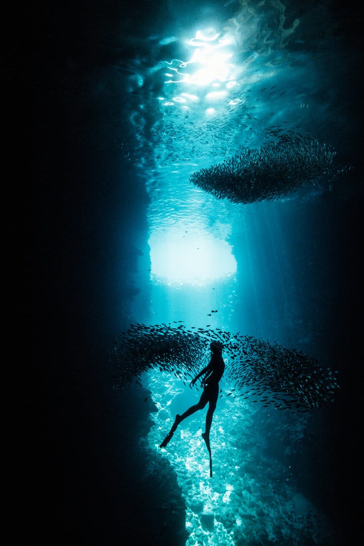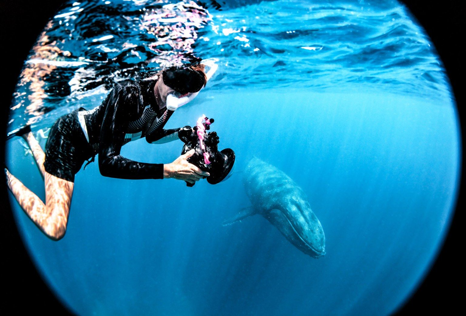 從小在德國長大的克魯格談到,她在 18歲前不曾看過海,當她在 15年後搬到澳洲時,她立刻愛上了海洋的神祕。現在,她更成了到處追逐座頭鯨和海洋生物的專屬攝影師,她也到大溪地和鯊魚與魟魚一起游泳。