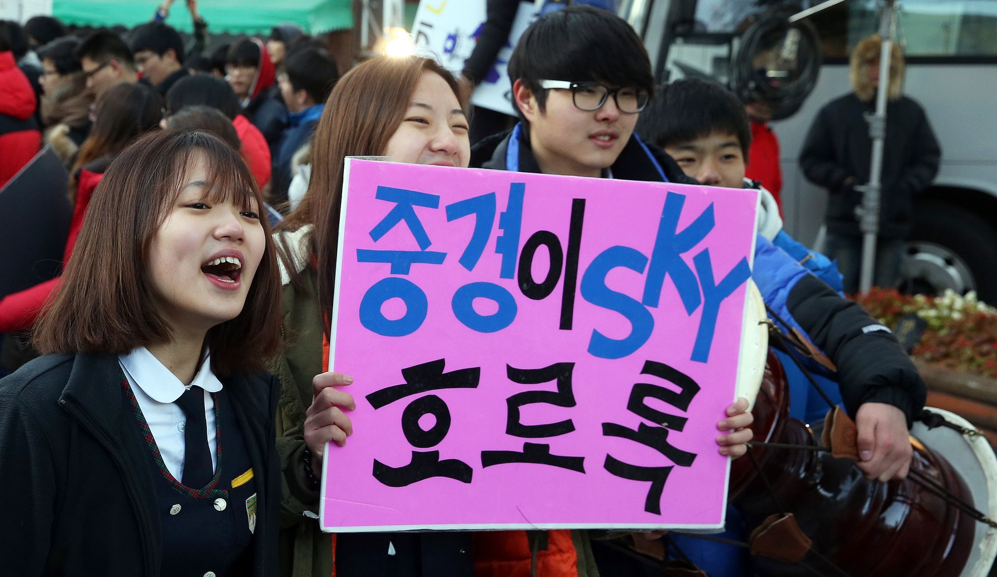 學子們高中三年期間歷經地獄式的苦讀,就是為了擠進「SKY」大學的窄門。所謂的SKY大學即韓國三大學府,分別為S首爾大學(Seoul National University)、K高麗大學(Korea University)和Y延世大學(Yonsei University)。這三所學校被稱為韓國大學的一片天,要考取的難度也如「登天」一般。SKY大學被視為培育菁英的搖籃,校友遍布韓國政治界、司法界、經濟界與科技界,前總統金泳三、金大中、李明博以及前聯合國秘書長潘基文等都出身自SKY。