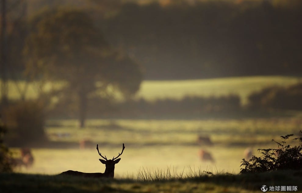 遠處隱隱約約可看到不少清晨外出覓食的鹿群。圖片來源:Christopher Furlong/Getty Images