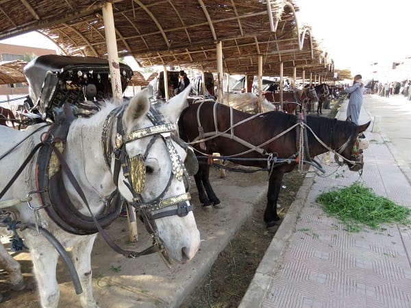 艾得夫神殿供馬匹休息的涼棚相當壯觀,也是遊客拍照的景點。蕭士塔/攝