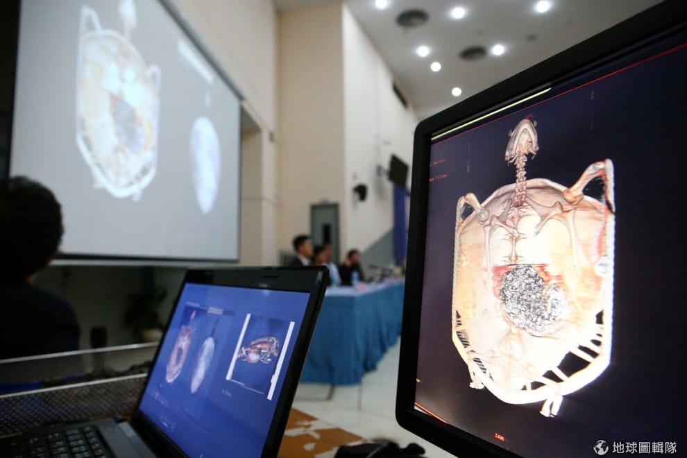 圖為本月月初接受完手術的海龜「撲滿」,牠本來術後情況良好,病情卻在上周六(18)惡化。