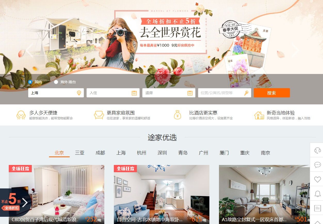 面對來勢洶洶的Airbnb,中國在地房間短租平台途家網早已做好準備,他們在中國的物件也比Airbnb多得多。