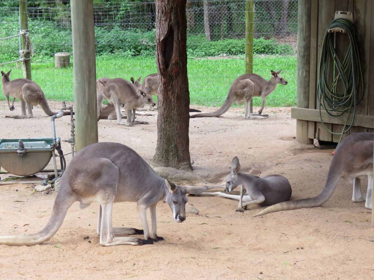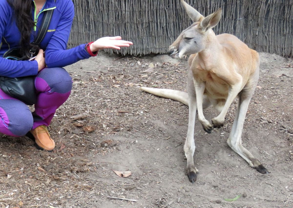 合作夥伴澳洲的國徽上就有袋鼠,是強烈的特色,旅行社帶團到澳洲,想盡辦法也要讓觀光客看到袋鼠及無尾熊,澳洲當地配合旅遊業的農場都飼養袋鼠、無尾熊等供觀賞。養在園區的袋鼠飯來張口,沒有覓食的壓力讓牠們整天懶洋洋,缺乏野性活力,遊客也樂得近距離接觸餵食或撫摸拍照。