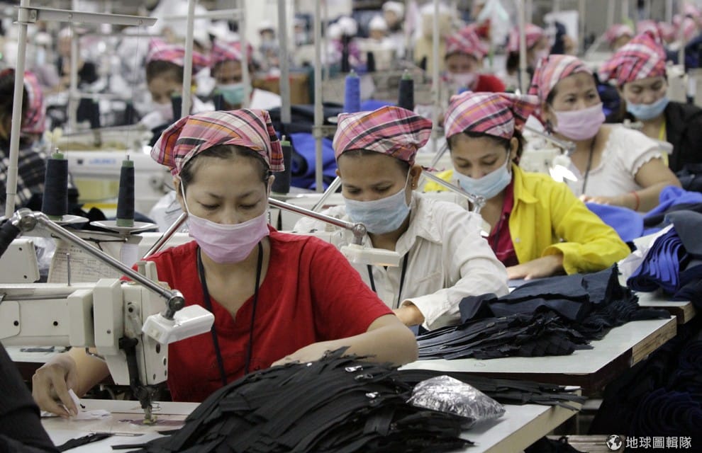 在金邊的一間紡織工廠裡,成排的紡織女工將裁縫機操作地噠噠作響。有的母親迫於生計,只好接下環境差工時長的工作。