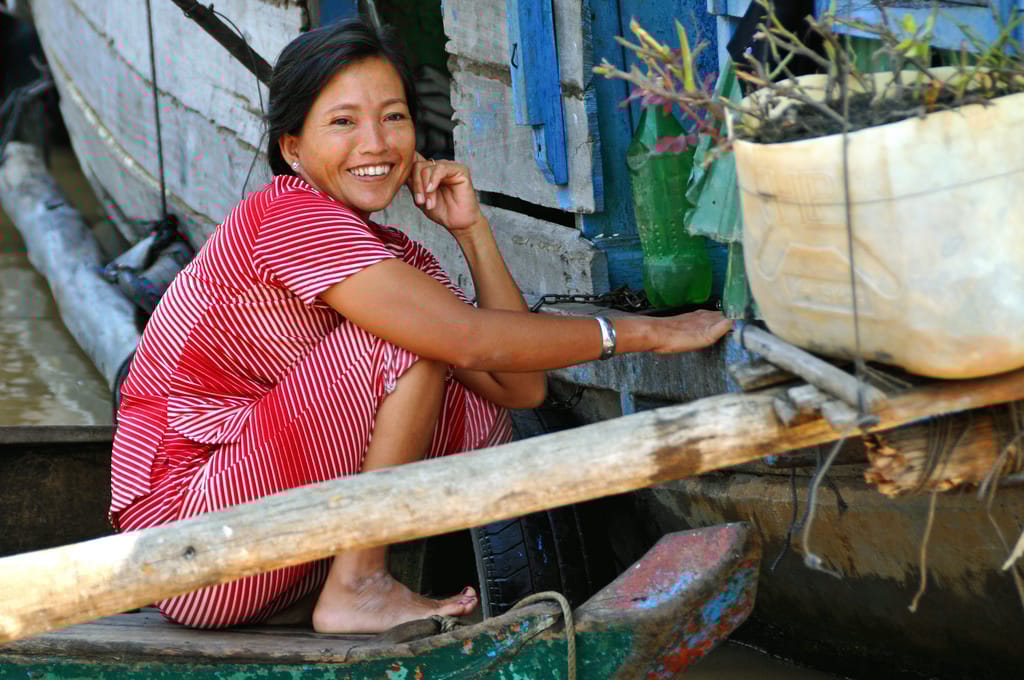 一名柬埔寨女子對著鏡頭露出微笑。柬埔寨母親賣母乳和女性身體自主權的討論息息相關。