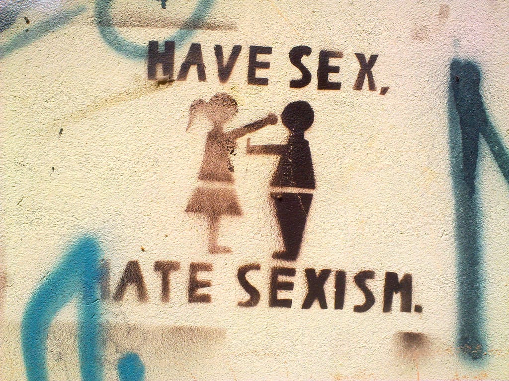 一則塗鴉上寫著「擁抱性愛,拒絕性別歧視」。