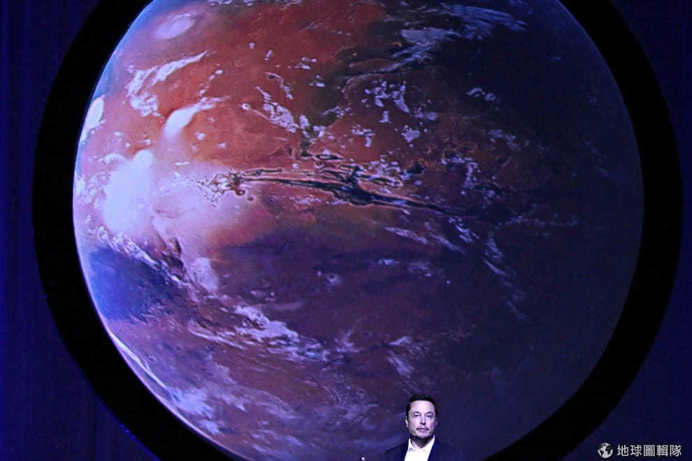 圖為 2016年9月,SpaceX執行長馬斯克在國際太空聯盟年會(International Astronautical Congress)上,說明他希望可以將地球人送上火星的遠大計劃。