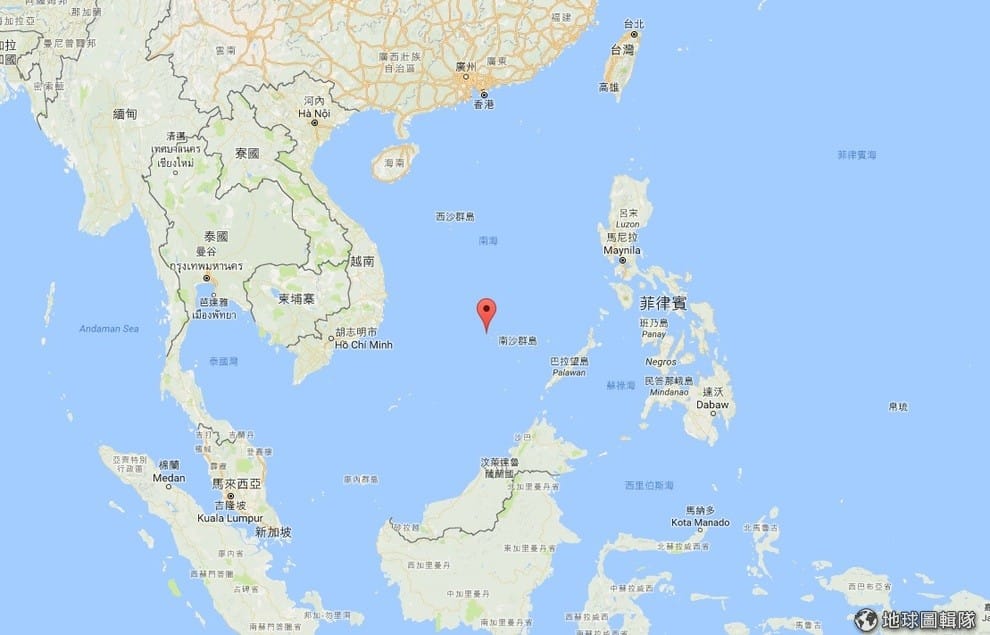圖中紅色地標處為中業島,目前這座島嶼由菲律賓管轄,中華民國曾經在這座島上駐軍。