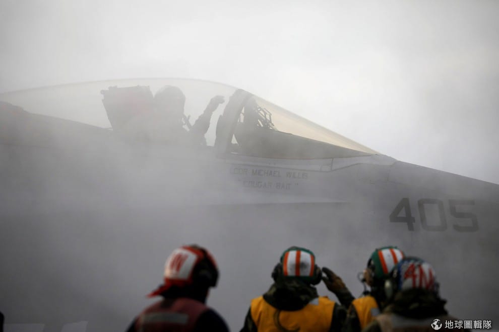 圖為今年 3月15日的美韓聯合軍演,一名F 18戰機的飛行員正準備從航空母艦卡爾文森號起飛。