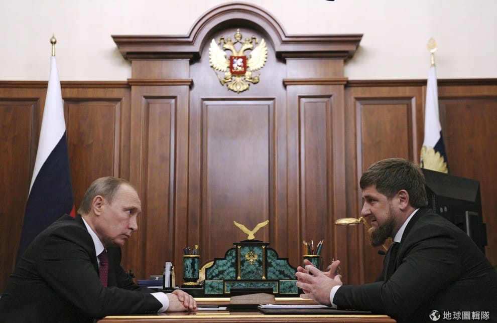 圖為俄國總統普亭(Vladimir Putin,左)和立場親俄的車臣領導人卡狄羅夫(Ramzan Kadyrov,右)。