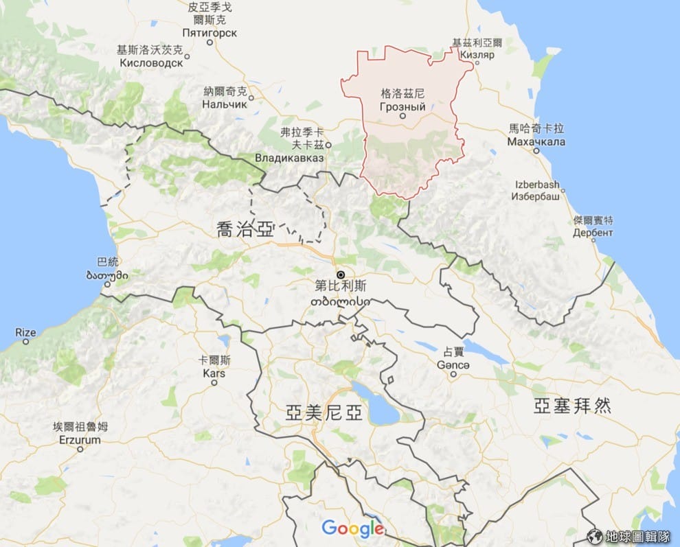 圖中紅框處即為位在俄國邊境的車臣共和國,車臣共和國是俄羅斯聯邦轄下的自治共和區。