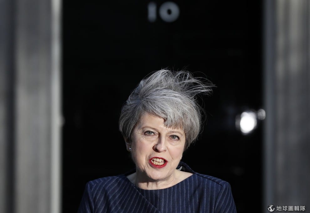 針對前保守黨領袖霍華的開戰說,英國首相梅伊一笑置之。圖為梅伊在 18號召開記者會,宣布要提前舉行國會大選,好建立一個團結的政府。