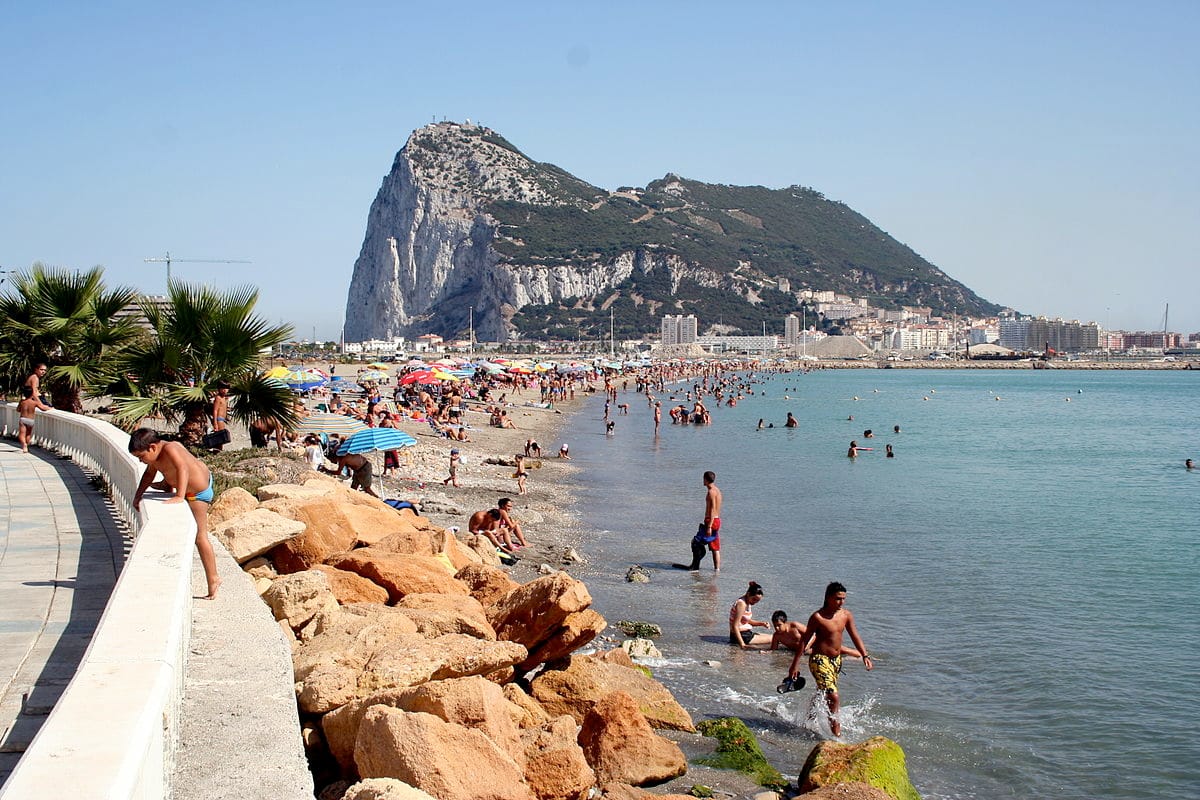 從拉利內亞鎮這一側的海灘望去,可以看到雄偉的直布羅陀巨岩。