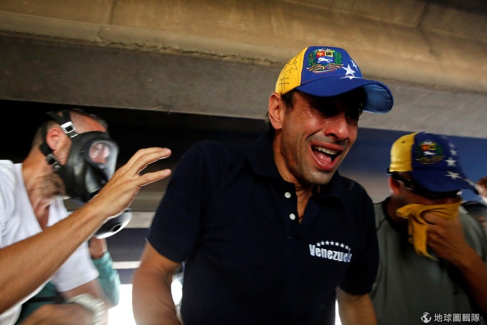 路透社受到催淚瓦斯波及的反對派領袖卡普利萊斯大口吸著氣,試著找回呼吸的步調。廣受人們支持的卡普利萊斯在本月被褫奪公權,也是引發人民不滿的原因之一。