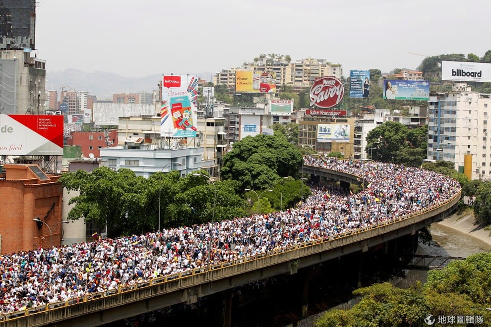 圖為示威人潮的俯瞰圖,他們從卡拉卡斯各處發起遊行,所有人潮到最後才匯聚在一起。