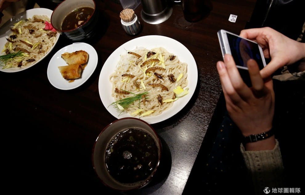 路透社東京一間拉麵店推出了期間限定的「蟲蟲沾麵」,短短四個小時內就賣出上百盤,受到嚐鮮客的喜愛。
