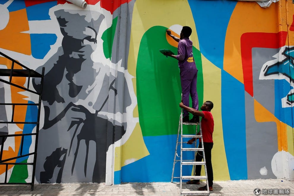 一名塗鴉藝術家正在首都拉哥斯的街頭上揮灑創意。貪腐一直是奈及利亞政府努力想改革對抗的問題。