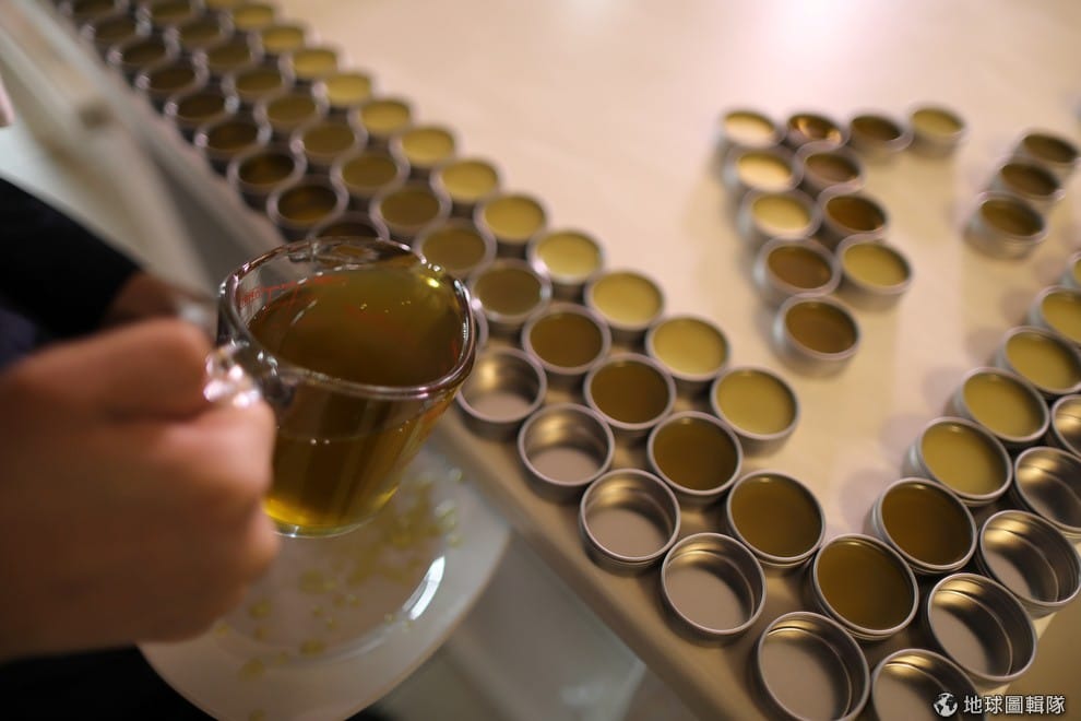 路透社黃澄澄的大麻精油被倒入已經預先擺好的小盒子,等它們冷卻後就會成為能隨身攜帶的塗油膏。