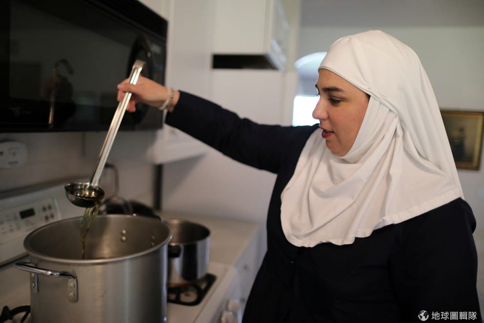 修女弗雷亞正在熬製大麻精油,熬好的精油會再調製成各式各樣的產品。