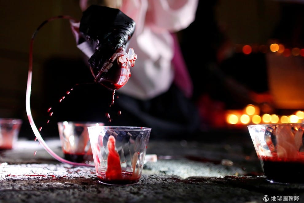 今年 4月21日晚間,墨西哥支持LGBT社群示威團體Chok3聚集到俄國大使館外頭,抗議車臣與俄國其他地方歧視、暴力對待當地同志的情況。他們正在用自己的血液製作抗議布條。