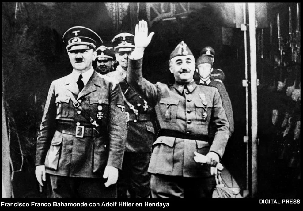 網友maix1940年10月23日,納粹德國領導人希特勒(左)和西班牙獨裁領袖弗朗哥(右)在鄰西班牙邊境不遠的法國昂代伊(Hendaye)會面,席間弗朗哥為了表達對納粹德國的友善之意,決定將西班牙的時間往前一小時,和納粹德國的時區同步。