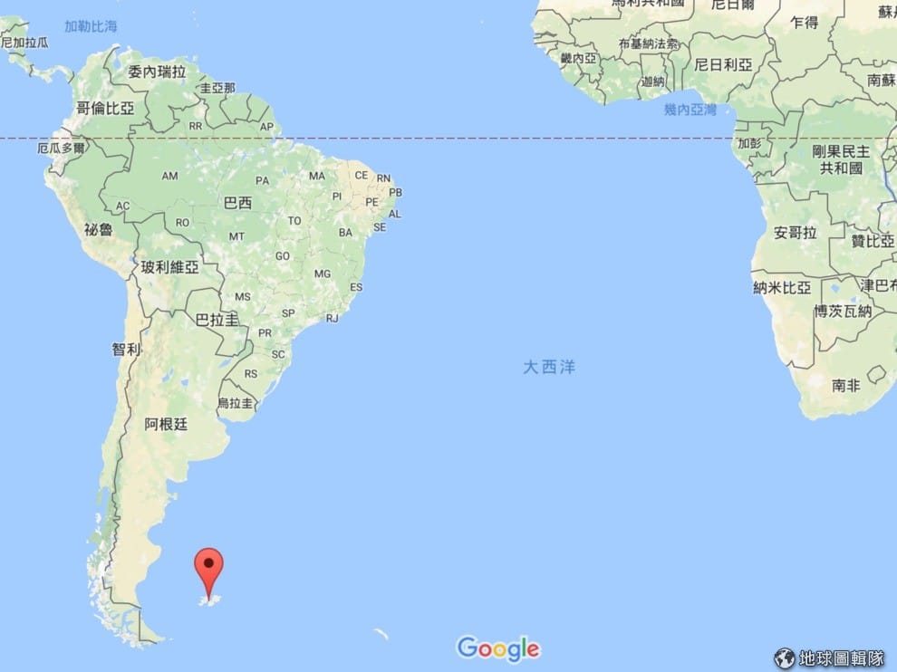 圖中標記處即為福克蘭群島所在地,該島嶼現在是英國的海外領土,不過福克蘭群島實質上擁有內部自治權,英國僅負責其國防和外交事務。